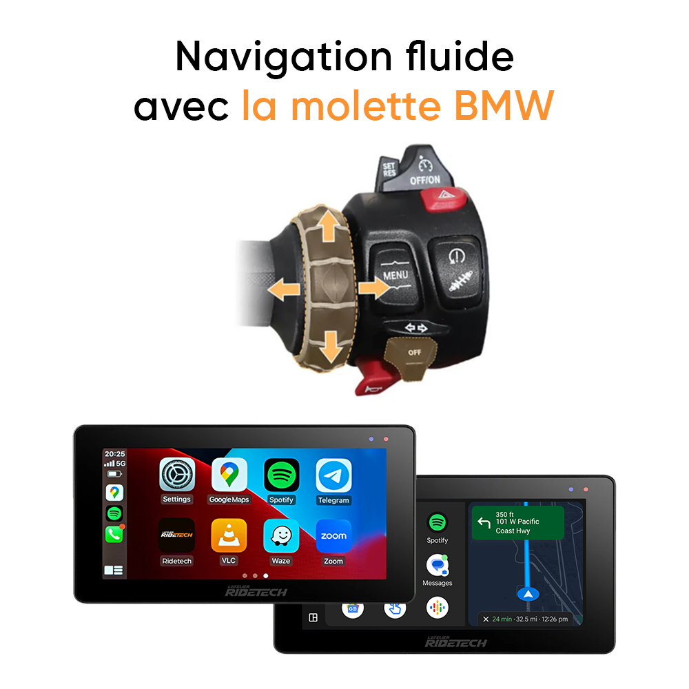 Contrôle à la molette BMW : navigation, musique, appels, guidage sans lâcher le guidon