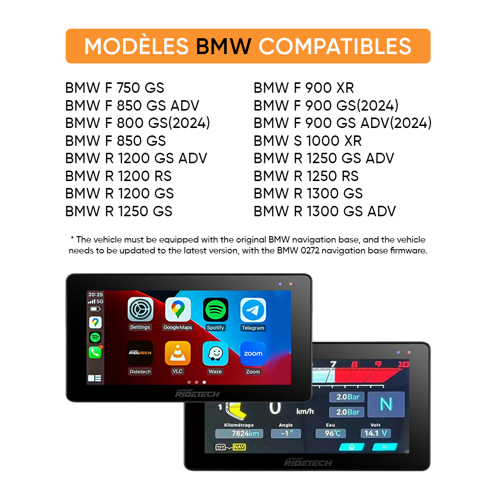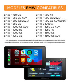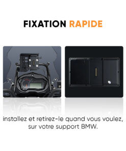 Le Kraft 5.5 est dédié exclusivement aux BMW. Contrôlable à la molette BMW (Wonder Wheel), il se branche en Plug & Play sans modifier le faisceau d’origine et reste amovible en quelques secondes. Relié à votre moto, il réunit vos applications (CarPlay/Android Auto) et les informations essentielles de votre moto sur un seul écran pratique.
